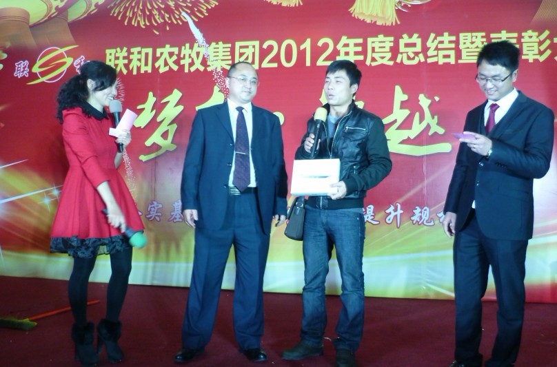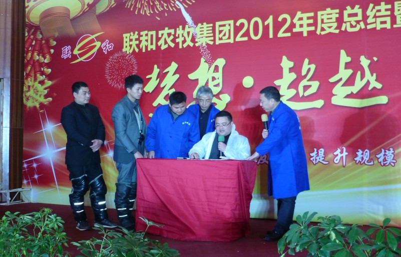編后語(yǔ):如果說(shuō)人生的精彩是因?yàn)橛袎?mèng)想,要是夢(mèng)想一旦成真,那就精彩萬(wàn)分。聯(lián)和農(nóng)牧集團(tuán)成立三年來(lái),從一個(gè)小小的工廠發(fā)展到目前擁有8個(gè)分公司,員工1500多人的大型專業(yè)化生產(chǎn)豬飼料的農(nóng)牧集團(tuán)。在王總裁及各位領(lǐng)導(dǎo)的帶領(lǐng)下,全體聯(lián)和人的辛勤的付出及努力下,公司一直以來(lái)堅(jiān)持貫徹實(shí)施獨(dú)特的“420221和母豬6階段科學(xué)飼養(yǎng)法”的飼養(yǎng)模式,推行以“科技領(lǐng)先,微利經(jīng)營(yíng),密集開(kāi)發(fā),服務(wù)營(yíng)銷”的經(jīng)營(yíng)理念,堅(jiān)持專業(yè)化、產(chǎn)業(yè)化的運(yùn)作,堅(jiān)持“聯(lián)合創(chuàng)造,和諧發(fā)展,服務(wù)養(yǎng)殖,共創(chuàng)未來(lái)”的發(fā)展理念,使得聯(lián)和人有了今天的成就。2012年集團(tuán)豬料銷量突破30萬(wàn)噸,同比增長(zhǎng)了160%,利潤(rùn)達(dá)成100%,同比增長(zhǎng)120%,并逐步打造了一支戰(zhàn)斗力強(qiáng)的“聯(lián)和團(tuán)隊(duì)”,形成了一個(gè)具有萬(wàn)千養(yǎng)戶資源的獨(dú)特“專業(yè)做好豬料”的聯(lián)和品牌。展望未來(lái),我們滿懷豪情。2013年聯(lián)和農(nóng)牧的目標(biāo)是要做豬料50萬(wàn)噸,在這新的一年中,我們相信聯(lián)和農(nóng)牧的發(fā)展必將如如沐春風(fēng),滾滾向前!最后祝愿我們聯(lián)和農(nóng)牧集團(tuán)明天更美好!
