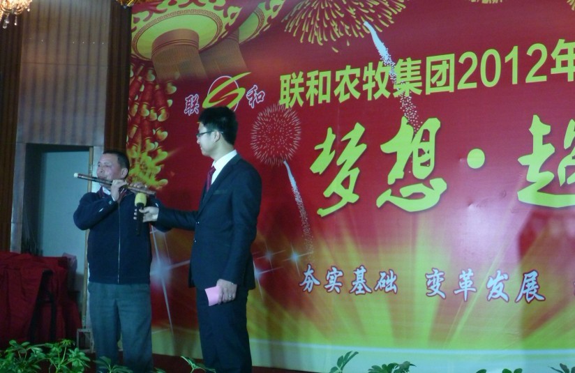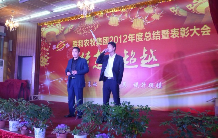上午8:30分,隨著一曲充滿激情雄壯、氣勢(shì)澎湃的《超越夢(mèng)想》的歌聲和激情四射的現(xiàn)代舞蹈拉開(kāi)了聯(lián)和農(nóng)牧集團(tuán)2012年度總結(jié)表彰大會(huì)的帷幕。南昌聯(lián)和飼料公司奉獻(xiàn)的小品《稱豬實(shí)證》將聯(lián)和營(yíng)銷精英在市場(chǎng)上1131的基礎(chǔ)工作搬到舞臺(tái)上活靈活現(xiàn)、淋漓精致的展現(xiàn)贏得臺(tái)下全體聯(lián)和人附和和掌聲,這是聯(lián)和人務(wù)實(shí)肯干,是聯(lián)和人誠(chéng)信協(xié)作的企業(yè)精神的最好的踐行和體現(xiàn)。由泰和聯(lián)和飼料公司演出的現(xiàn)代舞《NOBODY》,激情洋溢,優(yōu)美的舞姿,曼妙的身材,正如我們一線營(yíng)銷精英在市場(chǎng)上時(shí)刻充滿著活力和激情一樣,贏得臺(tái)下尖叫連連和陣陣歡呼。由南昌聯(lián)和實(shí)業(yè)推選一曲笛子獨(dú)奏《天路》將我們思緒平靜下來(lái),慢慢聆聽(tīng),使聯(lián)和人在這歡樂(lè)美滿的幸福時(shí)刻聆聽(tīng)到了我們來(lái)自一線基層員工對(duì)公司祝福,暖慰著人心。由新干聯(lián)和公司演出一曲《好兄弟》唱出了所有聯(lián)和營(yíng)銷精英的心聲,暖慰人心、寄托期望、書(shū)寫(xiě)真誠(chéng)。由總公司生產(chǎn)總監(jiān)樂(lè)總奉上的一曲《神奇的九寨》使聯(lián)和人在這個(gè)歡樂(lè)時(shí)刻、振奮人心的日子,倍感激動(dòng),唱出了聯(lián)和人美好的明天,將此次大會(huì)推到高潮,掌聲鮮花不斷。所有的表演沒(méi)有絲毫的造作、沒(méi)有絲毫的矯情,在雄渾有力的歌聲、歡笑聲、吶喊聲、和熱烈的掌聲中,聯(lián)和人盡情的抒發(fā)著自己對(duì)聯(lián)和的祝福和期望。