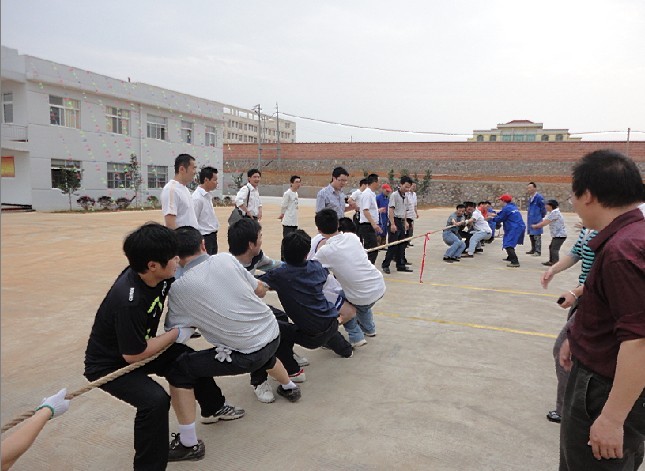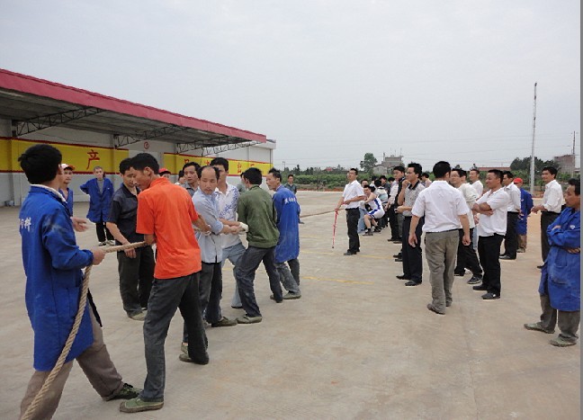 參賽隊伍一共有三支,分別是生產(chǎn)隊、銷售隊和后勤隊,每支隊伍共8名隊員。當(dāng)天下午6點整,拔河比賽正式在公司操場上正式拉開序幕。你瞧,場上雙方的精兵良將個個架式十足,全神貫注,憋足勁,只等一聲哨響,一觸即發(fā)。場外的啦啦隊也熱心地為他們歡呼,加油鼓勁。隨著一聲清脆的哨聲,賽場上頓時沸騰!凹佑、加油……”的吶喊聲此起彼伏,隊員們個個精神抖擻,齊心協(xié)力,使出了全身的勁,手抓著大繩往后拉、往后拔,大家拼的是毅力,比的是團結(jié)……經(jīng)過緊張而激烈的角逐,最終實力雄厚的銷售隊技高一籌,勇奪掛冠,生產(chǎn)隊、后勤隊分獲二、三名。