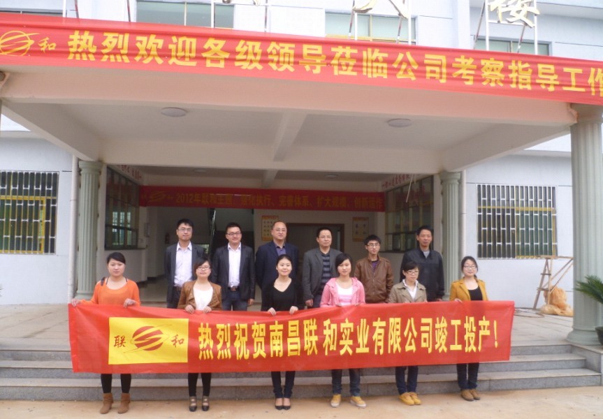 圖為:聯(lián)和農(nóng)牧總裁王曉林、南昌聯(lián)和實業(yè)總經(jīng)理華志平與南昌聯(lián)和實業(yè)財務(wù)、生產(chǎn)、客服、技品、采購等工作人員在公司辦公樓前合影。