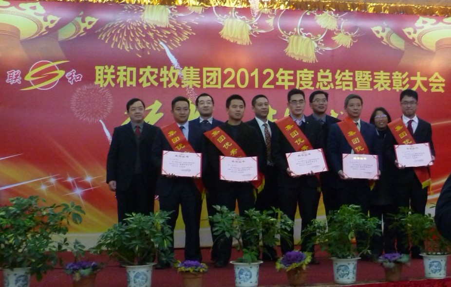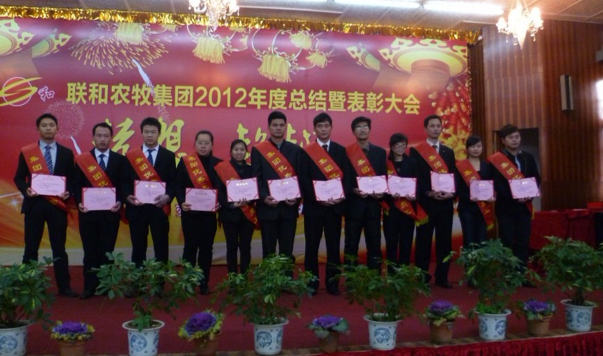 集團(tuán)技術(shù)總監(jiān)陳慧蓮、財務(wù)總監(jiān)薛云科、采購總監(jiān)易敬陽、生產(chǎn)總監(jiān)樂歡明、行政總監(jiān)孫澤玉5人分別為獲得2012年度集團(tuán)優(yōu)秀主管頒發(fā)榮譽(yù)證書。各分子公司總經(jīng)理等9人分別為獲得2012年度銷售精英和優(yōu)秀員工頒發(fā)榮譽(yù)證書。張琦、曾歡水總經(jīng)理分別代表獲得新干聯(lián)和公司、云南聯(lián)創(chuàng)公司發(fā)表獲獎感言,新干聯(lián)和張志偉、南昌聯(lián)和實業(yè)劉情、趙靜梅,分別代表銷售精英、優(yōu)秀主管和優(yōu)秀員工發(fā)表獲獎感言。