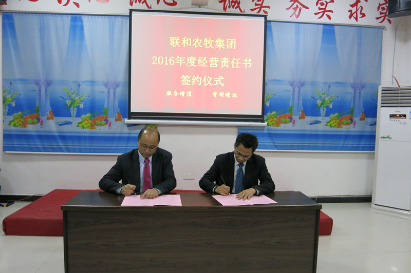 最后,集團(tuán)總裁王曉林與各公司總經(jīng)理進(jìn)行了2016年度經(jīng)營(yíng)責(zé)任書的簽約儀式,各公司總經(jīng)理鄭重承諾16年將全力以赴,保證各項(xiàng)任務(wù)百分百達(dá)成。