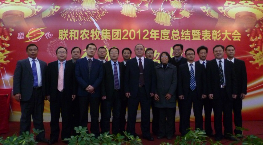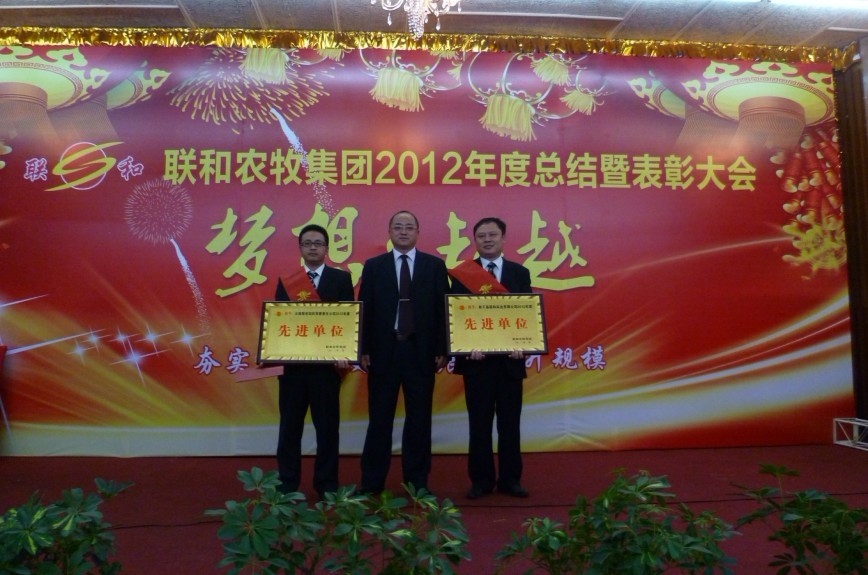 總結(jié)表彰大會為期2天(17-18日)。在17日當(dāng)天的總結(jié)大會上集團(tuán)邀請了清華大學(xué)客座教授、上海輔音國際的首席顧問趙明和王中老師為參會的近300人分別作了培訓(xùn)。上午王中老師作了《三大經(jīng)典營銷工具》的培訓(xùn),下午趙教授作了《產(chǎn)品可以豎著賣》和《如何打造執(zhí)行力》的培訓(xùn)。18日上午集團(tuán)總部各部門總監(jiān)以及各分子公司總經(jīng)理為2012年度獲得優(yōu)秀主管、優(yōu)秀員工以及銷售經(jīng)營頒發(fā)榮譽(yù)證書和授獎,集團(tuán)總裁王曉林為獲得2012年年度聯(lián)和農(nóng)牧集團(tuán)的先進(jìn)單位新干縣聯(lián)和實(shí)業(yè)有限公司、云南聯(lián)創(chuàng)飼料有限責(zé)任公司頒發(fā)榮譽(yù)證書和獎牌。