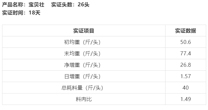 我是江西宜春豐城的胡俊,現(xiàn)有母豬存欄150余頭,一直以來,以前我用過很多品牌的飼料,產(chǎn)品質(zhì)量總是不夠穩(wěn)定,豬場效益也不理想。后面聯(lián)和的技術(shù)人員到我豬場給我提過很多的建議意見、讓我豬場的效益得到了很大的提升,讓我非常感動。2017年10月份開始,我豬場開始使用聯(lián)和的寶貝系列飼料,飼喂一段時間,我發(fā)現(xiàn)使用豬寶貝系列飼料的豬明顯不一樣,采食量很大、糞便也少,看著豬一天天的變化,我很高興。并且我還做了產(chǎn)品試驗,一段時間下來,豬差不多平均一天長一斤六兩,并且料肉比也很低,我很滿意!數(shù)據(jù)如下: