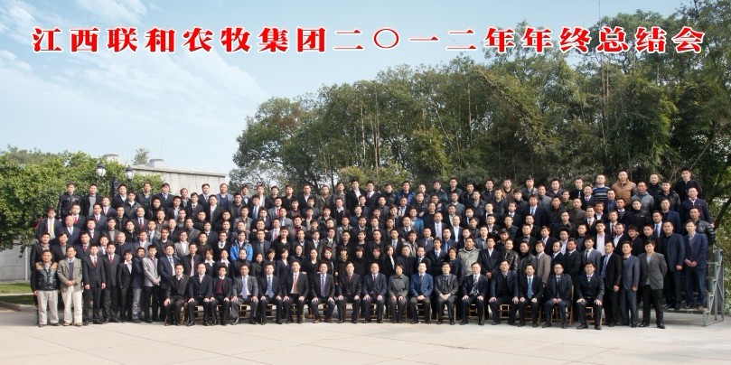 上午8:30分,全體與會人員起立,隨著一曲充滿激情、雄壯、氣勢、澎湃的《超越夢想》的歌聲中,以“夢想.超越——夯實(shí)基礎(chǔ)、變革發(fā)展、提升規(guī)!睘橹黝}的聯(lián)和農(nóng)牧集團(tuán)2012年度年終總結(jié)大會暨表彰大會隆重開幕。來自集團(tuán)總部各部門總監(jiān),以及職員、新干聯(lián)和、南昌聯(lián)和實(shí)業(yè)、泰和聯(lián)和、南昌聯(lián)和飼料、贛州聯(lián)和、云南聯(lián)創(chuàng)、云南和美、貴州和美公司等銷售精英代表、優(yōu)秀主管代表、優(yōu)秀員工代表近300人相聚一堂,共度歡樂美好時光,共商集團(tuán)發(fā)展大計(jì)。王總裁在會議上作總結(jié)發(fā)言,集團(tuán)總部各部門總監(jiān)和各分子公司總經(jīng)理在會議上作了述職報(bào)告,并簽訂2013年度經(jīng)營責(zé)任書。